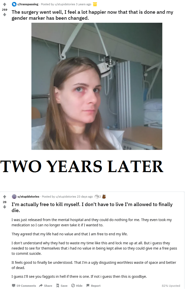 >The man is hysterical because his extremist ideological identity is built around being an "antinatalist" and a radical progressive. He sees the birth of a white son as a personal and political catastrophe that will make him a laughingstock in his online community. His rage escalates into violent threats, and he demands the baby to kill it, ending with the intention to bury the infant in a cardboard box under his shed.