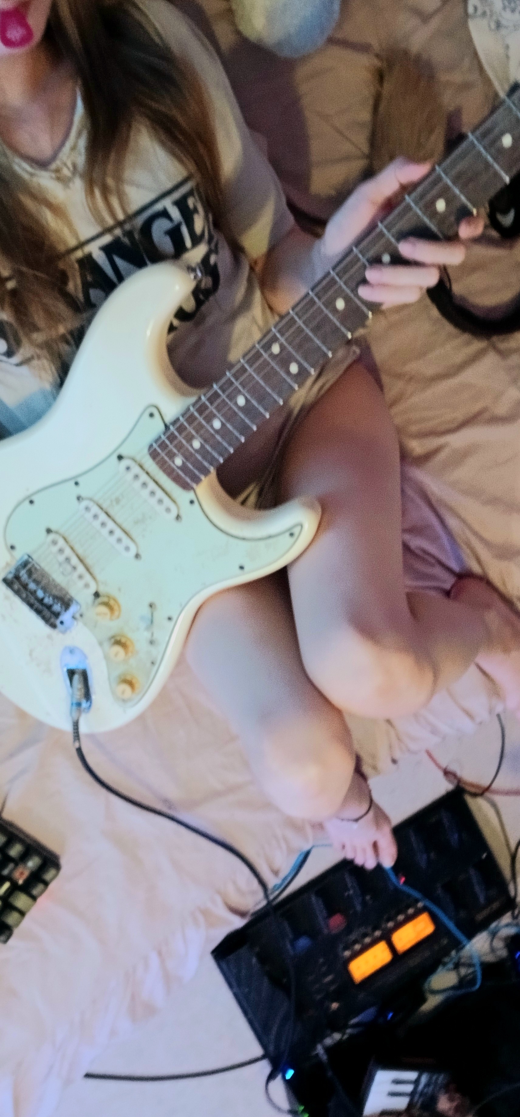 great December so far :3 surprisingly busy, but great! hope you've been having a good one too! do you have a favorite song or artist to play on your guitar? or do you write your own music? :3