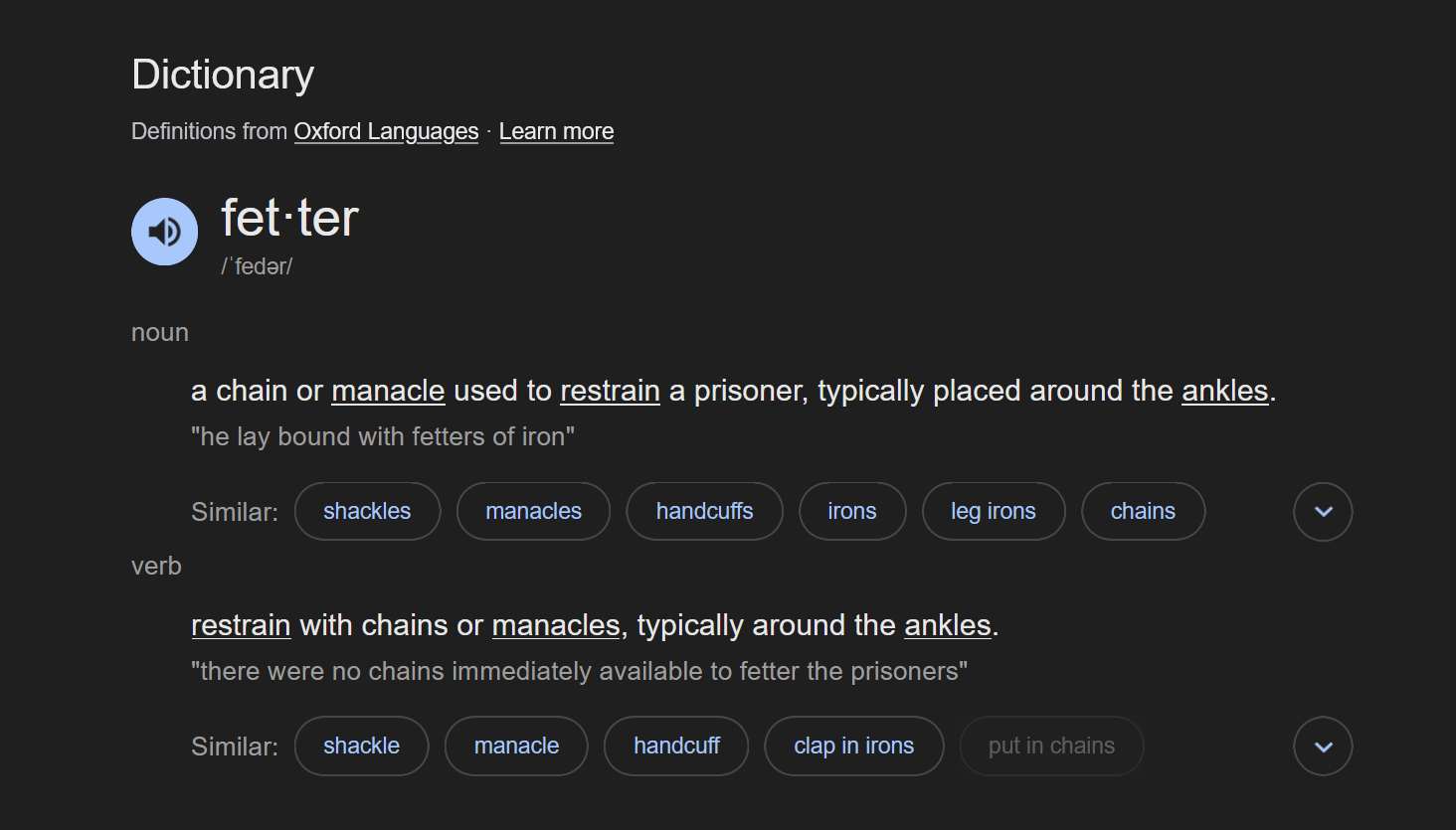 fettering is much more appropriate