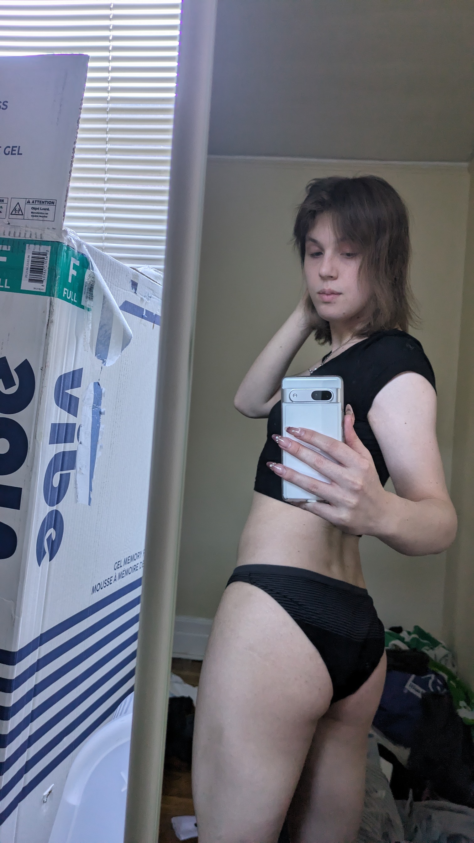 hmm nothing shiny but here's a panty pic... ill add that to my list of ideas for when i finally buy new lingerie stuff tho