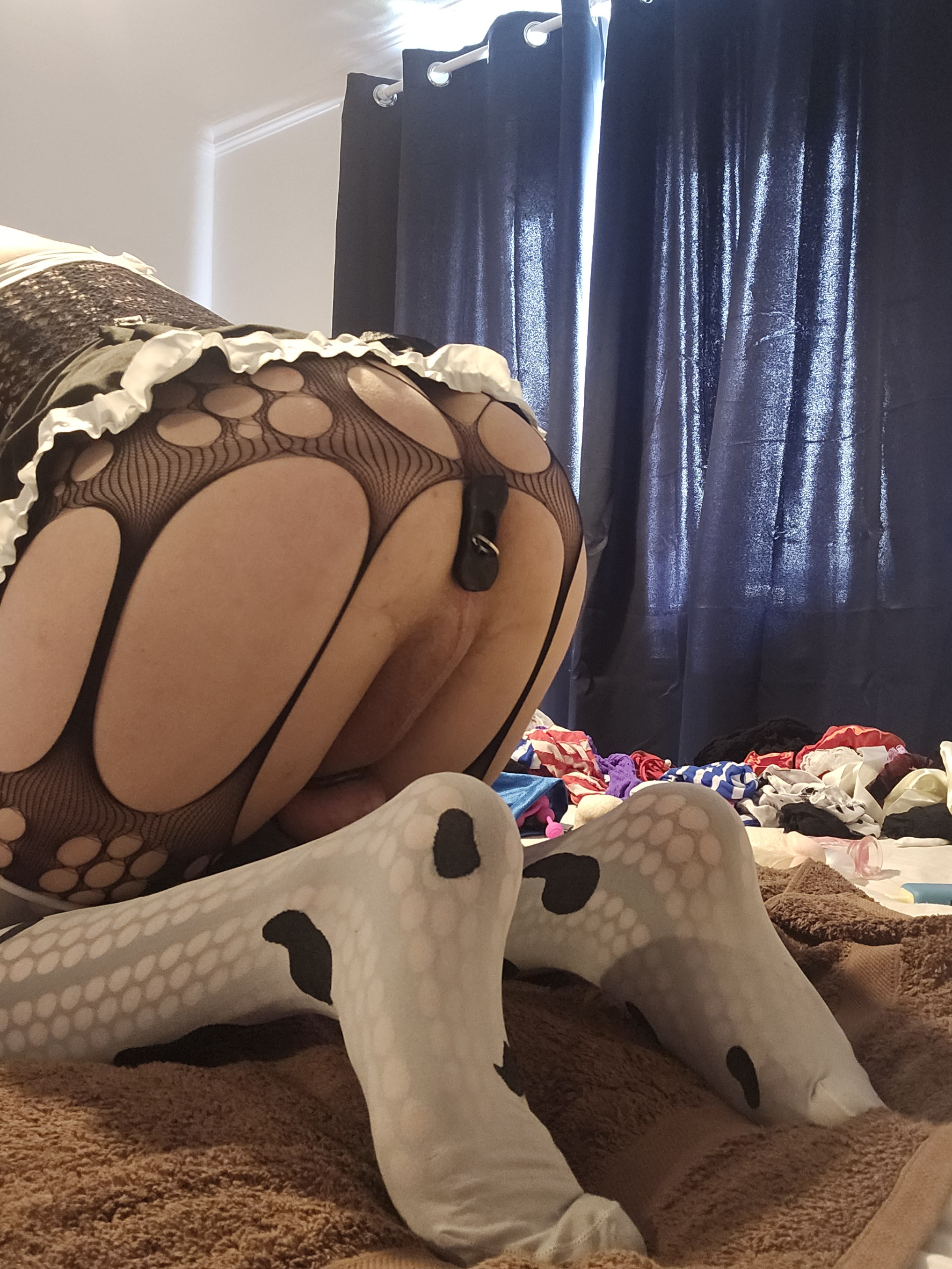 I need some advice. What’s more humiliating , wearing this outfit while locked in chastity or a completely normal picture of me uncaged showing off my 2 inch dick?